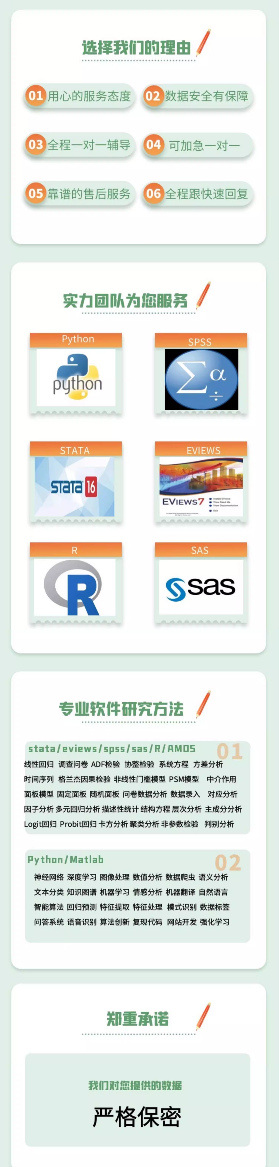 Stata数据分析服务SPSS代做Eviews实证Amos统计学处理R语言Python